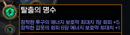 마스터리 노드 때문에 모든부위의 베이스에 회피가 들어가 있어야 하며, "탈출의명수" 전직 어센 때문에 갑옷에선 가능한 높은 회피를 챙겨주셔야 합니다.
