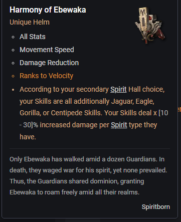 이러한 고유 투구를 사용하여 전문기술 보조혼령을 스킬 태그에 추가하고, 사용한 스킬의 혼령태그 "하나당" 최대 30% 곱연산 데미지를 얻게됩니다 ( 90% 곱연산 데미지를 매우 쉽게 얻게됨 )