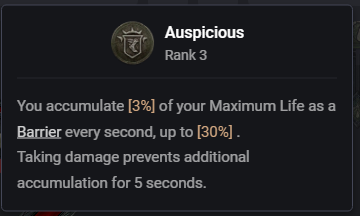 매초 체력의 3% 최대 30% 보호막을 얻지만, 피해를 받으면 5초간 보호막을 얻지않는 패시브 노드를 찍음으로서 주로 얻습니다. (+ 아래에서 설명할 룬으로도 보호막을 획득합니다.)