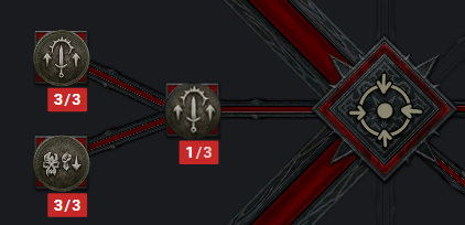 ※ 핵심기술, 집중기술과 같은 분류는 해당하는 스킬의 카테고리 입니다. 디아블로4 스킬트리를 자세히보면 각각 가운데의 특정한 마크가 있고 해당하는 마크로부터 스킬이 뻣어나가는 방식인데, 같은 마크에서 뻣어나온 스킬은 같은 카테고리가 보시면 됩니다.
