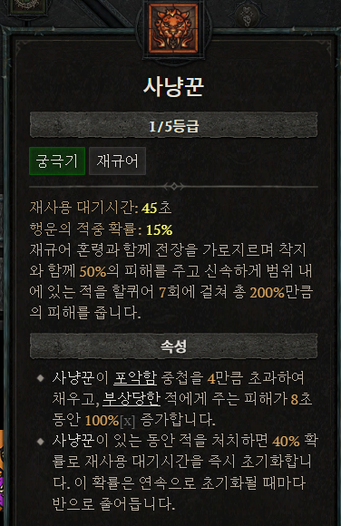 3. 포악함 4스택 이상시 (궁극기 사냥꾼, 기본기술 후리기) 처치시 생명력량 증가
