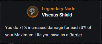 체력의 3%에 해당하는 보호막을 가지고 있을때마다, 1% 곱연산 데미지를 갖습니다.