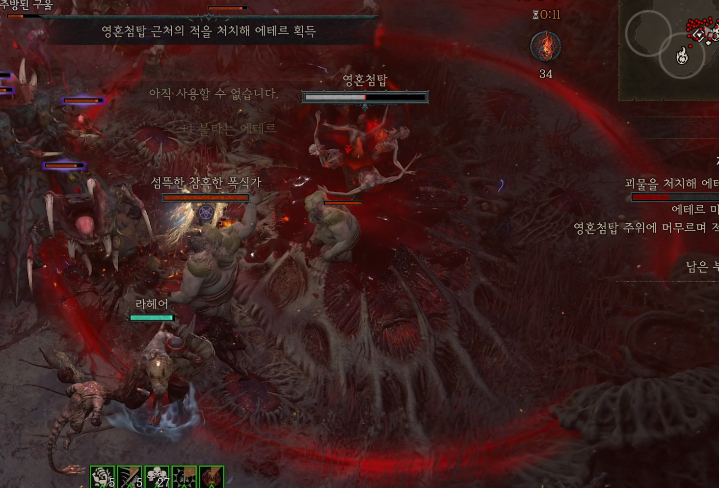 a. 영혼첨탑 : 위 사진의 둥근 원 범위안에서 몬스터를 잡으면 영혼첨탑의 체력이 닳게됩니다. 체력이 다 닳으면 에테르를 드랍합니다.