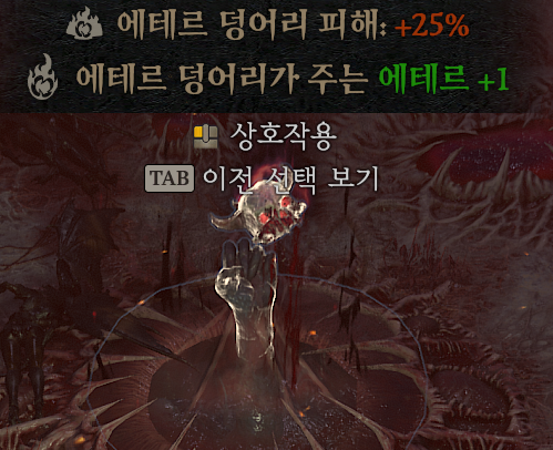 i. 각 기둥은 위 사진과같이 다음 파상에 특별한 메리트(=에테르를 더 많이먹을수있는)을 얻는 대신, 몬스터가 쎄지는등의 디메리트를 주는 기둥입니다. 반드시 한개를 선택해야만 다음 파상이 시작됩니다.