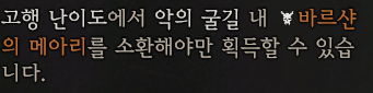 듀리엘 고통의파편 x2 / 미끄러운 점액질달걀 x2 안다리엘 모래그을음의 굴레 x2 / 바늘 꽂이 인형 x2 바르샨 악의 심장 x4 그리구아르 살아있는 강철 x12 얼음속의 야수 정제된 공포 x12 지르 극상의 피 x12 ※모든 난이도에서 입장재료는 동일하나, 난이도별 신화고유 드랍율만 다릅니다.