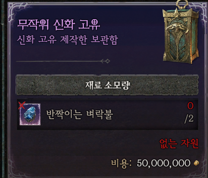 대장장이에게 벼락불2개로 무작위 신화고유 상자로 변경가능. (굳이?)