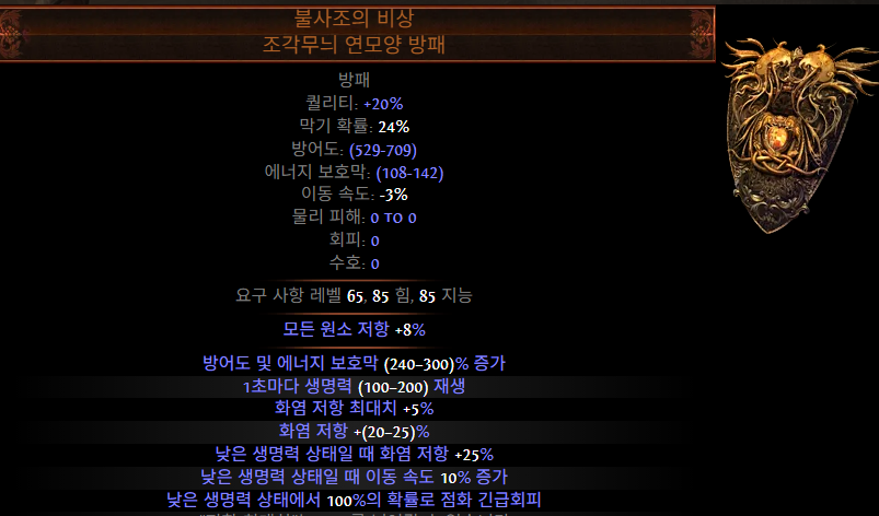 - 화염저항 초과해서 많이 챙겨야 하는 이유 = 생명력재생(숙련노드) / 번,냉저항(치프틴 전직노드)