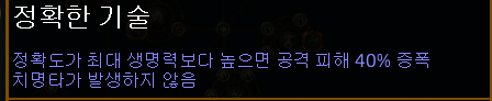 ※ 정확한기술 : 정확도가 생명력보다 높아야함. (정밀함 오라 사용)