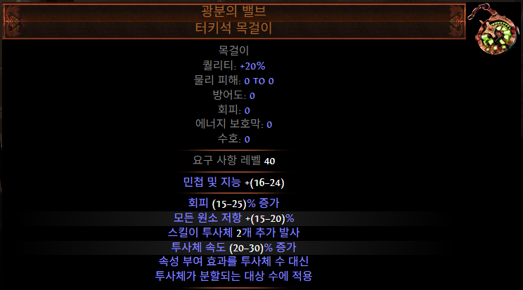 4. 메인 스킬젬변경 : 반동의 독성혼합물 - 상위 다중투사체 보조 - 상위 사격공세 보조 - 공허 조작 보조