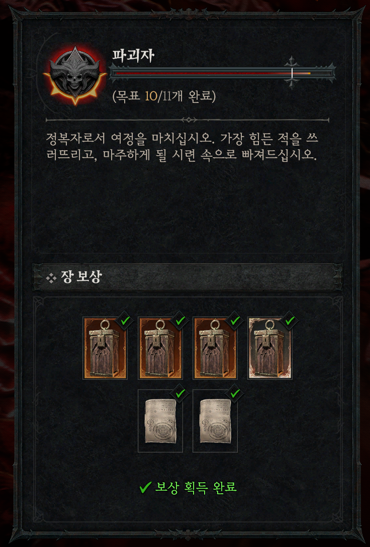| 야만용사 | 심홍색의 전장, 만보, 고르의 파멸적인 손 보호구, 붉은 열광의 반지 |
